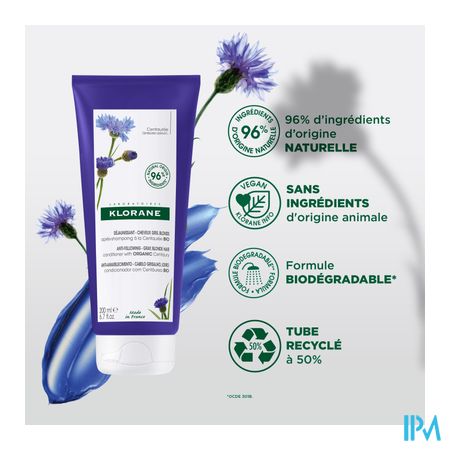 We hebben BIO Duizendguldenkruid geselecteerd, een bron van cyanocentaureine, een plantenpigment met blauwachtige tinten, dat traditioneel wordt gebruikt om wit of grijs haar mooie zilveren highlights te geven. De formule van de Klorane's ontwarrende conditioner met biologische Duizendguldenkruid is een verzorgingsproduct bij uitstek met ontwarrende werking en siert het haar met subtiele koele reflecties. Het haar wordt zacht en makkelijk te stylen, en onthult al zijn schoonheid en glans.