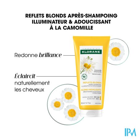 Klorane heeft deze conditioner met Kamille speciaal samengesteld om natuurlijk blond haar, gekleurd haar of haar met een coupe soleil te verzorgen. De conditioner is geschikt voor alle gezinsleden vanaf drie jaar. Gebruik dit product samen met de shampoo met kamille voor een verzorgingsritueel dat blond haar hydrateert, ontwart, verlicht en een gouden glans geeft. De natuurlijke* formule voelt aangenaam aan en is verrijkt met kamille, een plantaardig bestanddeel met verlichtende eigenschappen dat blond haar een mooie, natuurlijke gouden glans geeft. Dankzij de smeuïge, in het haar smeltende textuur hydrateert de conditioner het haar en maakt deze het haar gemakkelijker doorkambaar. Na het wassen heeft het haar een subtiele, jeugdige geur.