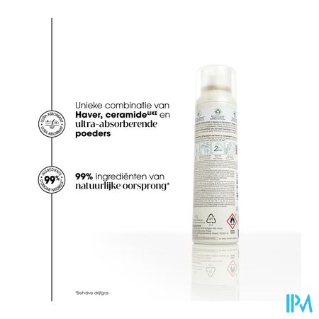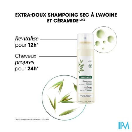 De Droogshampoo met Haver en Ceramideᴸᴵᴷᴱ van Klorane is speciaal ontworpen om het haar te kunnen wassen zonder water. De nieuwe, 100% onzichtbare formule combineert verzachtend extract van Haver en beschermende Ceramideᴸᴵᴷᴱ met ultra-absorberende poedersoorten om het haar in slechts 2 minuten tijd te reinigen, te beschermen en te revitaliseren, en dat wel 12uur lang*. De ideale oplossing om het haar te verfrissen en luchtig te laten aanvoelen. Gegarandeerd residu-vrij. Geschikt voor het haar van mannen en vrouwen. *Consumententest, 66 personen na 21 dagen