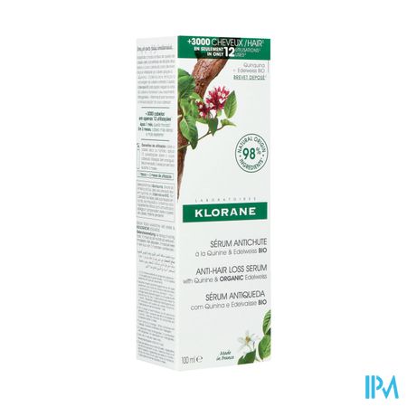 Haaruitval, een bron van stress en bezorgdheid, kan met de juiste, doelgerichte haarverzorging optimaal aangepakt worden. Het natuurlijke complex (kinine + BIO Edelweiss) dat vervat zit in dit Serum tegen haaruitval van Klorane geeft kracht aan haar dat door stress, vermoeidheid, hormonale schommelingen, enz. futloos is geworden. Te gebruiken als 3-maand durende verzorgingskuur gedurende om haarverlies doeltreffend tegen te gaan, de groei van bestaand haar te helpen stimuleren en tot sterker haar te komen. Met bewezen anti-haaruitval doeltreffendheid na 1 maand gebruik* en sterker haar vanaf de eerste toepassing**. Dit Serum geeft het haar de nodige boost vanaf de wortel tot in de puntjes. Het vermindert haaruitval* met sterker** en voller haar als resultaat.