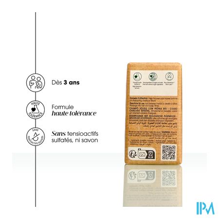 *Zonder ingrediënten van dierlijke oorsprong. ** Gemiddeld gebruik gebaseerd op de volgende berekening: Met één shampoo bar (80 g) kunt u tussen 32 en 44 shampoobeurten doen, d.w.z. ongeveer evenveel als de 38 beurten met 2 flessen van vloeibare shampoo van in totaal 400 ml (gemiddelde waargenomen bij gebruik, in vergelijking met 2 flacons van 200 ml vloeibare shampoo). Af te wegen al naargelang de grootte en dikte van de haarbos.