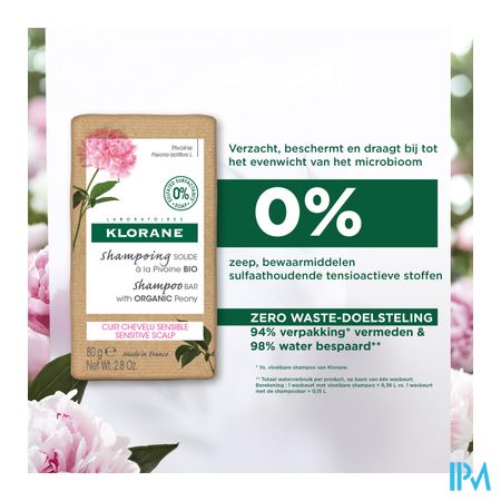Shampoo bar met BIO Pioenroos werkt onmiddellijk verzachtend in om de gevoelige en geïrriteerde hoofdhuid van het hele gezin te verzorgen. Geschikt voor gebruik vanaf de leeftijd van 3 jaar. Deze formule in vaste vorm is vegan* en bevat geen gesulfateerde oppervlakteactieve stoffen noch zeep. Hij is verrijkt met het extract van BIO Pioenroos, geteeld in een beschermd ecosysteem en traditioneel bekend om zijn verzachtende en anti-irriterende eigenschappen. Deze shampoo komt in vaste vorm, in een zuinig en handig meeneembaar formaat. Deze shampoo bar is het equivalent van twee flessen van 200 ml**! Dit product heeft een ontspannende geur en geeft een rijk schuim dat mild reinigt. Het verlicht meteen het huidongemak en de jeuk van de hoofhuid, maar laat ook het haar soepel aanvoelen en mooi glanzen. Dit product vindt het perfecte midden tussen doeltreffendheid en eco-design: het heeft een minimalistische recycleerbare papieren verpakking en een formule in vaste vorm.