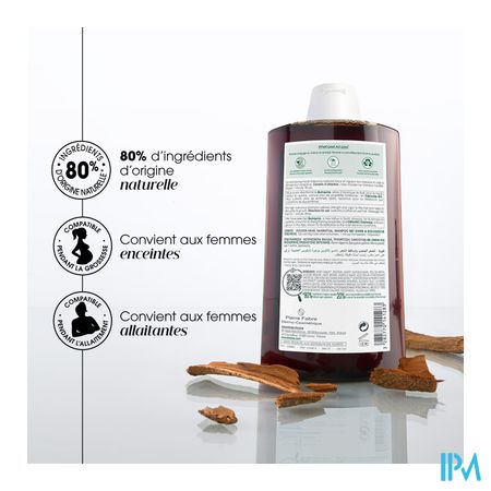 De versterkende en stimulerende anti-haaruitval shampoo met Kinine, afkomstig van de medicinale Kinabast van Klorane, biedt een echte oplossing om haaruitval te vertragen en vermoeid haar te revitaliseren. De synergie van Kinine en Cafeïne vermindert haaruitval en versterkt de verankering van het haar, terwijl biologische Edelweiss, Mangaan en Kinine hun groei stimuleren. De sulfaatvrije formule wast het haar mild en beschermt het tegen beschadiging en kwetsbaarheid. Hierdoor wordt de haaruitval met 60% vertraagd*, is het haar minder breekbaar en wordt het sterker.