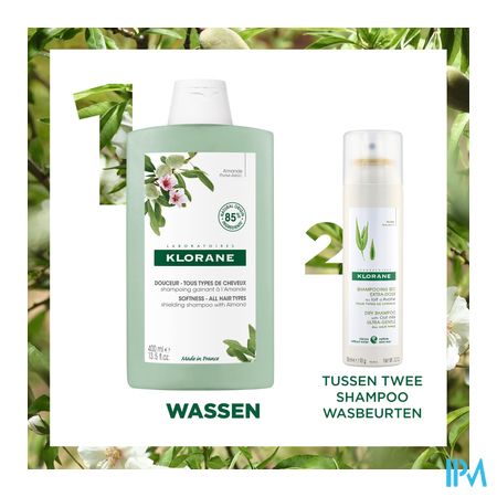 Omhullende Shampoo met Amandel van Klorane wordt dagelijks gebruikt om alle haartypes te reinigen, te verzachten en onmiddellijk soepel en stevig te maken. De formule bevat zoete amandelolie, een 100% natuurlijk actief bestanddeel met een hoog gehalte aan vetzuren. De Laboratoires Klorane hebben het koudgeperst en rechtstreeks in een zintuigprikkelende en romige formule verwerkt, om geen voedende eigenschappen te verliezen. Door het haar in een omhullend schild te hullen, beschermt de shampoo met amandel de haarvezel met elke wasbeurt. Het vergemakkelijkt het ontwarren, verbetert de fixatie en beschermt het haar dagelijks. Het haar wordt zacht en glanzend met een zacht parfum.