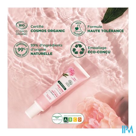 • Kalmeert: bekend om zijn kalmerende en anti-irriterende eigenschappen, vermindert BIO pioenroos de gevoeligheid van de huid met -49%*. De huid is de hele dag gekalmeerd. • Beschermt: dankzij de voedende eigenschappen van Arganolie wordt de huidbarrière beschermd tegen aanvallen van buitenaf. • Hydrateert: de formule werd verrijkt met hydraterende bestanddelen en glycerine.