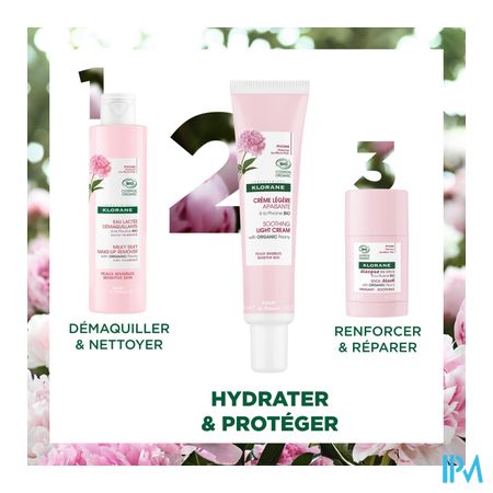 De Lichte kalmerende crème met BIO Pioenroos van Klorane kalmeert de gevoelige huid onmiddellijk en langdurig. De lichte textuur wordt gemakkelijk geabsorbeerd en biedt onmiddellijk comfort voor een perfect gehydrateerde huid. Dit goed verdragen verzorgingsproduct is gecertificeerd biologisch en werd verrijkt met BIO extract van pioenroos, bekend om zijn kalmerende en anti-irriterende eigenschappen. Biologische Arganolie staat bekend om zijn lipidenconcentratie en helpt de huidbarrière te versterken.