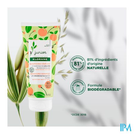De zachte Ontwarrende Shampoo van Laboratoires Klorane, subtiel geparfumeerd met perzik, reinigt in alle zachtheid de hoofdhuid en het haar van kinderen vanaf 3 jaar. De biologisch afbreekbare* formule met 81% aan ingrediënten van natuurlijke oorsprong is ideaal voor frequent gebruik. Het lichte schuim met een heerlijke perzikgeur reinigt het haar op milde wijze en is makkelijk uit te spoelen. De formule biedt het haar de zachtheid en de hydratatie die het nodig heeft, zonder in de ogen te prikken. Met deze kindershampoo rijk aan BIO haver is het haar makkelijker te ontwarren. Het soepele, glanzende haar is gehydrateerd en voelt heerlijk zacht** aan. De speelse en kleurrijke verpakking zorgt ervoor dat lichaamshygiëne plezier, spel en leren combineert.* Volgens de OECD 301B*norm**100% tevreden: Gevoed en gehydrateerd haar, glanzend, soepel, makkelijk te ontwarren.