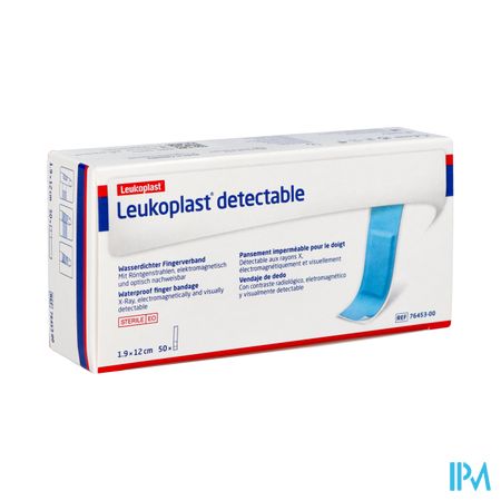 Leukoplast detectable zijn steriele vingerpleisters en wondpleisters voor kleine wonden en prikplaatsen. Ze zijn ontworpen om zichtbaar en detecteerbaar te zijn, ze zijn blauw en bevatten metaal- en röntgendetecteerbare materialen in het absorberende wondkussen.