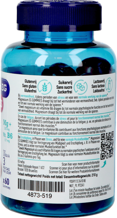 Magnesium EG GUMMIES is een voedingssupplement met aangename aardbeismaak die per drie gummies 225 mg magnesium, alsook 0.7 mg vitamine B6 bevat.