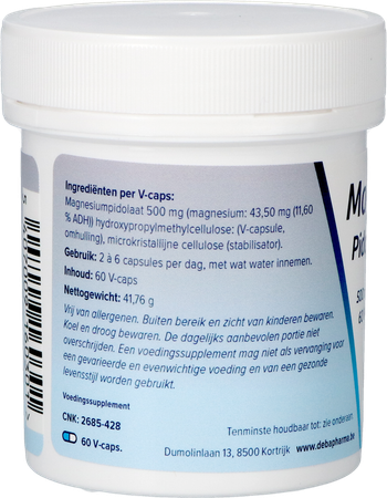 Magnesiumpidolaat V-caps 60x500mg Deba is een voedingssupplement, verkrijgbaar in uw buurtapotheek of online apotheek. Neem niet meer dan de aanbevolen dagelijkse dosis vermeld op de verpakking. Het vervangt geen gezonde levensstijl en gevarieerde en evenwichtige voeding. Vraag raad aan uw apotheker. Het product altijd buiten het bereik van kinderen houden.