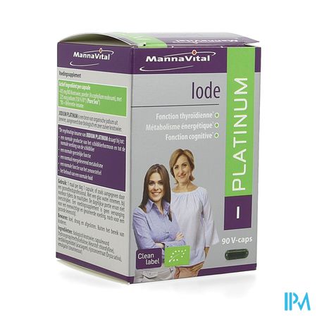 Mannavital Jodium Platinum Bio V-caps 90 is een voedingssupplement, verkrijgbaar in uw buurtapotheek of online apotheek. Neem niet meer dan de aanbevolen dagelijkse dosis vermeld op de verpakking. Het vervangt geen gezonde levensstijl en gevarieerde en evenwichtige voeding. Vraag raad aan uw apotheker. Het product altijd buiten het bereik van kinderen houden.