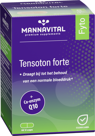 Mannavital Tensoton Forte V-caps 60 is een voedingssupplement, verkrijgbaar in uw buurtapotheek of online apotheek. Neem niet meer dan de aanbevolen dagelijkse dosis vermeld op de verpakking. Het vervangt geen gezonde levensstijl en gevarieerde en evenwichtige voeding. Vraag raad aan uw apotheker. Het product altijd buiten het bereik van kinderen houden.
