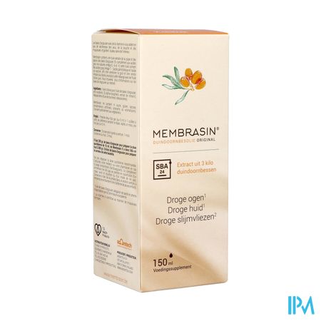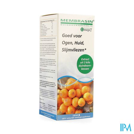 Membrasin ® is een zuiver olie-extract dat wordt gewonnen uit de pitten en het vruchtvlees van duindoornbessen. Deze 100% natuurlijke olie zit boordevol vitamines en omega-vetzuren. Zij voeden de huid letterlijk van binnenuit en houden de interne vochtbalans en het collageen op peil. En hoe meer collageen: des te steviger en elastischer de huid! Membrasin® duindoornbesolie is verkrijgbaar in capsulevorm en druppels.