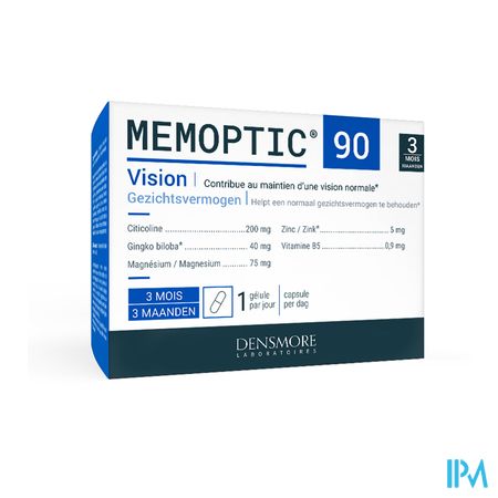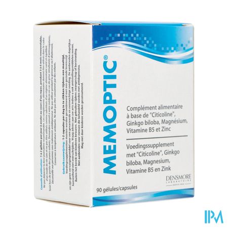 Memoptic Caps 90 is een voedingssupplement, verkrijgbaar in uw buurtapotheek of online apotheek. Neem niet meer dan de aanbevolen dagelijkse dosis vermeld op de verpakking. Het vervangt geen gezonde levensstijl en gevarieerde en evenwichtige voeding. Vraag raad aan uw apotheker. Het product altijd buiten het bereik van kinderen houden.