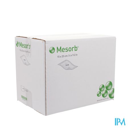 Mesorb is een zacht en sterk absorberend verband dat grote hoeveelheden exsudaat kan vasthouden. De vloeistofafstotende ruglaag voorkomt externe contaminatie van de wond en beschermt kleren en beddengoed tegen lekkages.