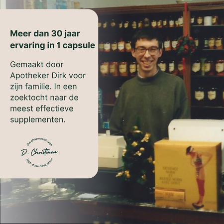 's Ochtends of bij het ontbijt 3 capsules met water innemen.