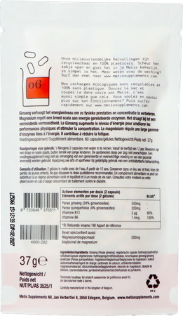 Metis Energy 06 is een natuurlijk supplement op basis van Magnesium en Ginseng. Het helpt vermoeidheid te verminderen en je energiepeil langdurig te ondersteunen.