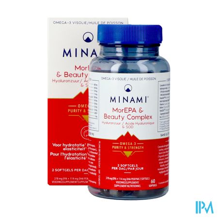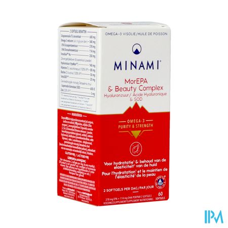 Minami Morepa&beauty Complex Softcaps 60 is een voedingssupplement, verkrijgbaar in uw buurtapotheek of online apotheek. Neem niet meer dan de aanbevolen dagelijkse dosis vermeld op de verpakking. Het vervangt geen gezonde levensstijl en gevarieerde en evenwichtige voeding. Vraag raad aan uw apotheker. Het product altijd buiten het bereik van kinderen houden.