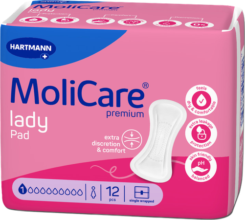 MoliCare® premium inleggers zijn ideaal voor vrouwen met zeer licht tot matig urineverlies. Dankzij de elastische randjes voor draagcomfort aan de zijkanten en diepe laterale lijnen voor een anatomische pasvorm bieden de inleggers betrouwbare bescherming tegen urineverlies, discretie en draagcomfort. MoliCare SkinGuard® absorberende kerntechnologie voor een onmiddellijk droog gevoel en een gezonde huid.
