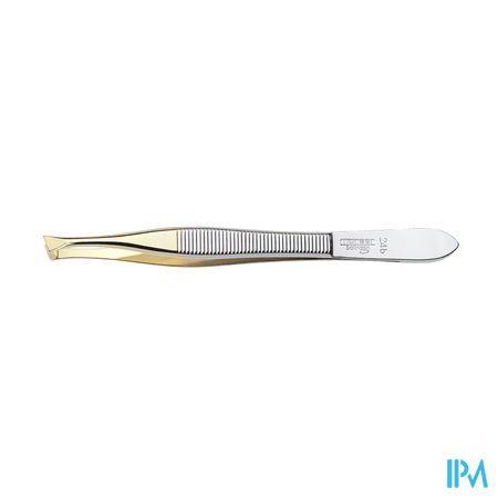 De vergulde tip heeft niet alleen een mooi uitzicht maar klampt de fijne haartjes ook veel beter vast. Dankzij de schuine punten kunt u veel gemakkelijker alle haartjes verwijderen, ook in de gevoelige zones. De pincet is gemaakt in Solingen.