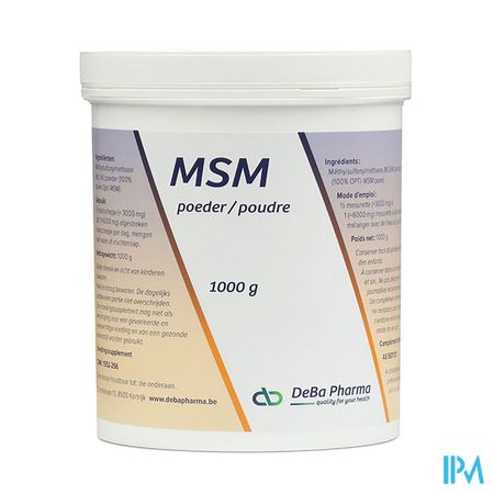 Msm Pdr Soluble/ Oplosb 1kg Deba is een voedingssupplement, verkrijgbaar in uw buurtapotheek of online apotheek. Neem niet meer dan de aanbevolen dagelijkse dosis vermeld op de verpakking. Het vervangt geen gezonde levensstijl en gevarieerde en evenwichtige voeding. Vraag raad aan uw apotheker. Het product altijd buiten het bereik van kinderen houden.