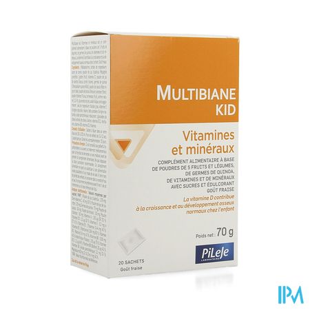 Multibiane Kid Zakje 20 is een voedingssupplement, verkrijgbaar in uw buurtapotheek of online apotheek. Neem niet meer dan de aanbevolen dagelijkse dosis vermeld op de verpakking. Het vervangt geen gezonde levensstijl en gevarieerde en evenwichtige voeding. Vraag raad aan uw apotheker. Het product altijd buiten het bereik van kinderen houden.