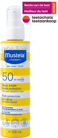 De Zonnespray hoge bescherming SPF 50 beschermt de gevoelige, zon-intolerante en atopische huid tegen UVA- en UVB-stralen. Voor het gezicht en lichaam. Vanaf de geboorte(1) en voor het hele gezin.