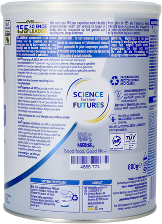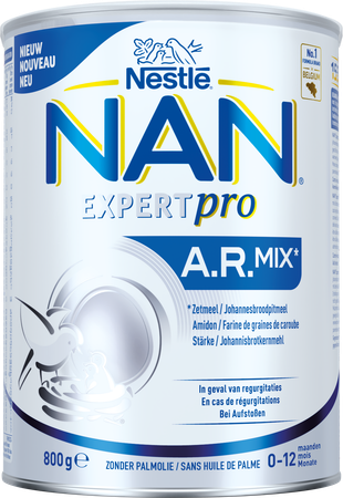 NAN® Expertpro A.R. MIX is een melk verrijkt met een mix van zetmeel en johannesbroodpitmeel in geval van regurgitatieproblemen. Het product is specifiek geschikt om te worden gebruikt als voeding voor zuigelingen vanaf hun geboorte wanneer zij geen borstvoeding krijgen. Kan als enige voedingsbron gebruikt worden. Moet onder medisch toezicht gebruikt worden. Is niet bestemd voor parenteraal gebruik.