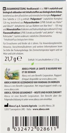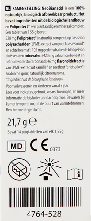Neobianacid Citroen Tabl 14 is een voedingssupplement, verkrijgbaar in uw buurtapotheek of online apotheek. Neem niet meer dan de aanbevolen dagelijkse dosis vermeld op de verpakking. Het vervangt geen gezonde levensstijl en gevarieerde en evenwichtige voeding. Vraag raad aan uw apotheker. Het product altijd buiten het bereik van kinderen houden.