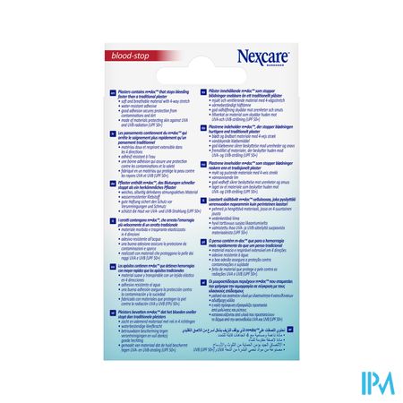 Nexcare™ Blood-Stop pleisters zijn EHBO-kleefstrips voor eenmalig gebruik met microgedispergeerde geoxideerde cellulose die bloedverlies verminderen en het bloeden sneller stoppen dan traditioneel verband (zonder m•doc™).