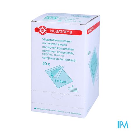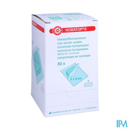 Het steriele 4-laags non-woven doekje is bindmiddelvrij vervaardigd en heeft het absorptievermogen van een 8-laags gaasdoekje. Het materiaal is zeer zacht en daardoor zacht voor de huid. NOBATOP® -steriel 8 dient als wondbedekking. 50 steriele zakjes met elk 2 vliesafdekkingen zijn verpakt in een opvouwbare doos met handige dispenseropening.