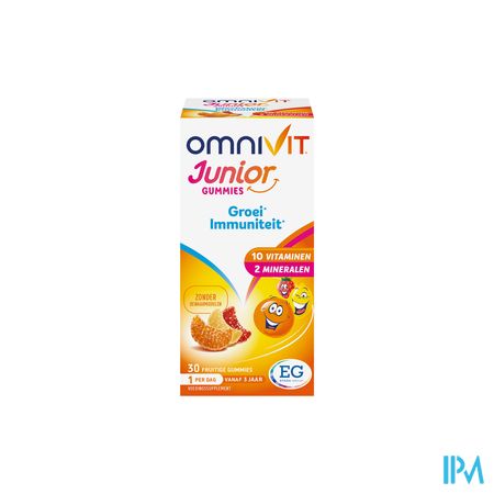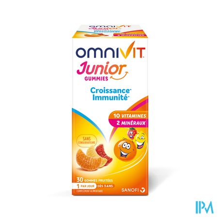 Met Omnivit Junior Gummies krijgt uw kind iedere dag in een gommetje met fruitsmaak 10 vitamines en mineralen. Essentiële elementen voor een goede groei en een goede weerstand ... want groeien vraagt energie.