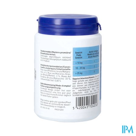 Hond vanaf 10 kg: 1 maatschepje per dag. Gebruiksduur van een potje is 4 maanden.