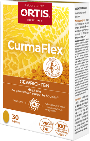 Ortis Curmaflex Gewrichten Comp 30 is een voedingssupplement, verkrijgbaar in uw buurtapotheek of online apotheek. Neem niet meer dan de aanbevolen dagelijkse dosis vermeld op de verpakking. Het vervangt geen gezonde levensstijl en gevarieerde en evenwichtige voeding. Vraag raad aan uw apotheker. Het product altijd buiten het bereik van kinderen houden.
