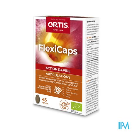 Ortis Flexicaps Comp 45 is een voedingssupplement, verkrijgbaar in uw buurtapotheek of online apotheek. Neem niet meer dan de aanbevolen dagelijkse dosis vermeld op de verpakking. Het vervangt geen gezonde levensstijl en gevarieerde en evenwichtige voeding. Vraag raad aan uw apotheker. Het product altijd buiten het bereik van kinderen houden.