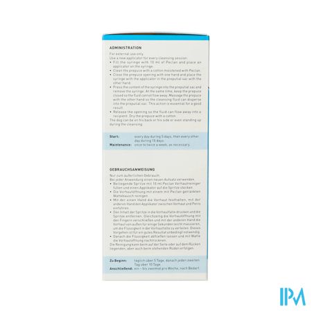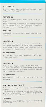 PECLAN reinigt en verzorgt het preputium (voorhuid)van de reu.Bij een verhoogde slijmvorming en ophoping vanvuil onder de voorhuid gaat de hond zichvoortdurend schoon