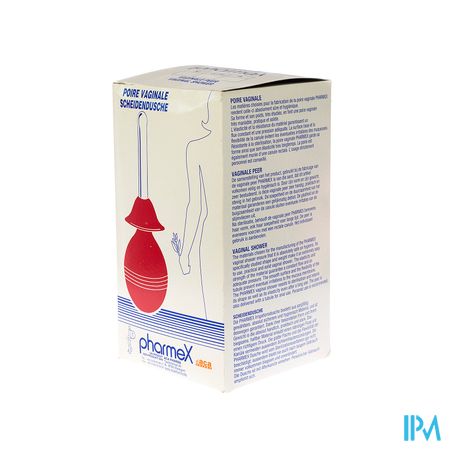 Na sterilisatie, behoudt de vaginale peer Pharmex benevens haar vorm, ook haar soepelheid voor lange tijd. De peer is eveneens voorzien met een rectale canule.