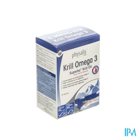 Krill zijn kleine garnaalachtigen die behoren tot het zoöplankton. De Physalis krill olie is afkomstig van de Antarctische krill of Euphausia superba. Krill olie is rijk aan de omega 3-vetzuren EPA en DHA. De omega 3-vetzuren in krill olie zijn aanwezig onder de vorm van fosfolipiden, een vorm die veel beter door het lichaam wordt opgenomen. Naast omega 3-vetzuren bevat de olie astaxanthine.