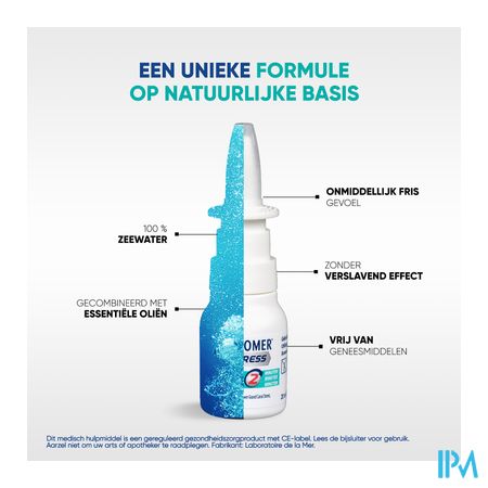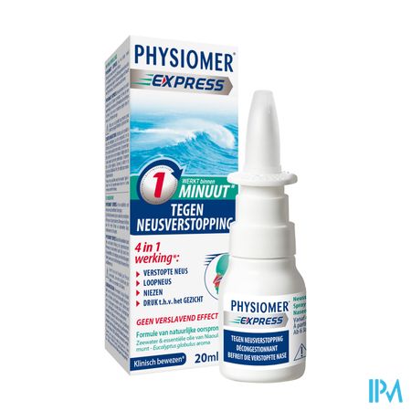 PHYSIOMER® Express is een handige neusspray in pocketformaat op basis van 100 % puur hypertonisch zeewater(3). Physiomer® Express zorgt voor onmiddellijke verlichting en maakt de verstopte neus binnen 1 minuut(1) vrij, met een uitstekende tolerantie.