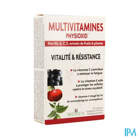 Physioxid Caps 40 Holistica is een voedingssupplement, verkrijgbaar in uw buurtapotheek of online apotheek. Neem niet meer dan de aanbevolen dagelijkse dosis vermeld op de verpakking. Het vervangt geen gezonde levensstijl en gevarieerde en evenwichtige voeding. Vraag raad aan uw apotheker. Het product altijd buiten het bereik van kinderen houden.