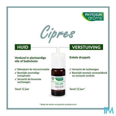 AROMABAD om de microcirculatie te bevorderen: meng in een dosis douchegel 5 druppels Cipres. Laat goed intrekken en voeg toe aan het badwater onder de kraan.