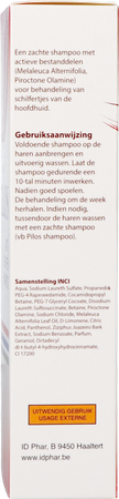 Voldoende shampoo op de haren aanbrengen en uitvoerig wassen. Laat de shampoo gedurende een 10-tal minuten inwerken. Nadien goed spoelen. De behandeling om de week herhalen. Indien nodig, tussendoor de haren wassen met een zachte shampoo (vb Pilos Shampoo).