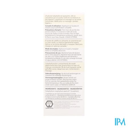 Tips & advies: Wallen en donkere kringen: Wrijf elke ochtend na het wassen van het gelaat 2 druppels van 5 ml Calophyllum PO tussen de wijsvingers. Masseer met de wijsvingers de wallen of kringen. De olie moet worden opgenomen, maar wel zonder druk uit te oefenen. Daarna even betten zodat het mengsel goed wordt opgenomen. Na enkele dagen zijn de effecten vooral zichtbaar bij kraaienpootjes, blauwachtige wallen en kringen, eerder dan bij donkere wallen.