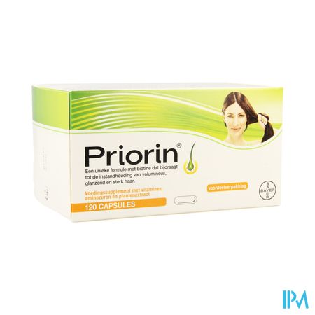 Priorin Caps 1x120 is een voedingssupplement, verkrijgbaar in uw buurtapotheek of online apotheek. Neem niet meer dan de aanbevolen dagelijkse dosis vermeld op de verpakking. Het vervangt geen gezonde levensstijl en gevarieerde en evenwichtige voeding. Vraag raad aan uw apotheker. Het product altijd buiten het bereik van kinderen houden.