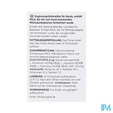 Procanicare is een supplement voor honden die de maag- en darmgezondheid ondersteunt. Bacteriën groeien het best in de diersoort waar ze vandaan komen. Dit is speciaal ontworpen voor honden en is het eerste product voor gastro-intestinale ondersteuning die de goede bacteriën afkomstig van honden bevat.