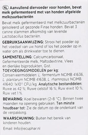 Additieven: Proccanius® (Lactobacillus fermentum NCIMB 41636, Lactobacillus plantarum NCIMB 41638, Lactobacillus rhamnosus NCIMB 41640). Gefermenteerd in gepasteuriseerde melk, in totaal minimum 3x1011 CFU/kg.