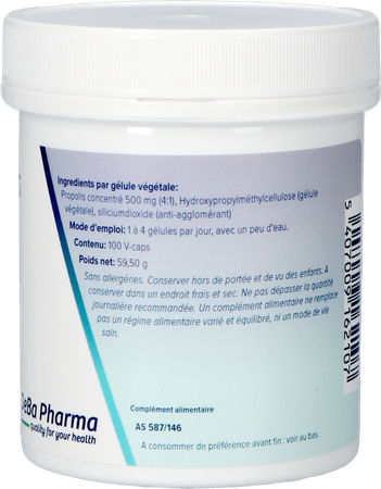 Propolis is een natuurlijk antibioticum. Het versterkt de natuurlijke weerstand in de strijd met virussen, bacteriën en schimmels.