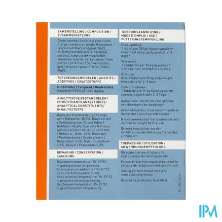 Grote veenbes, NaCl, MSM, sorbitol, magnesiumstearaat, varkenslever, gist, CaCl2, MgCl2, Kaolien.