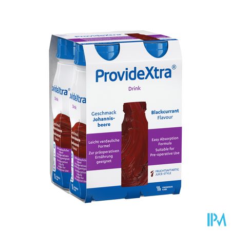 Water, maltodextrine, sacharose, hydrolysaat van erwteiwit, zwarte bessen diksap, zuurteregelaar (E330), calciumcitraat, aroma, magnesiumcitraat, vit. C, kaliumchloride, magnesiumchloride, stabilisator (E440), ijzercitraat, vit. E, zinksulfaat, niacine, pantotheenzuur, antischuimmiddel (E471), mangaanchloride, kopersulfaat, vit. B6, riboflavine, natriumfluoride, thiamine, vit. A, foliumzuur, kaliumjodide, chroomchloride, natriumseleniet, vit. K1, natriummolybdaat, biotine, vit. D3, vit. B12.