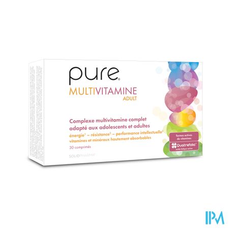 - Dagelijkse aanvulling om eventuele tekorten in de voeding op te vangen en reserves in het lichaam aan te bouwen. Zeker belangrijk wanneer het dagelijks leven heel druk is. Pure Multivitamine Adult bevat de ideale doseringen van micronutriënten met een optimale opneembaarheid: een optimale nutriëntenstatus is essentieel voor een goede gezondheid.